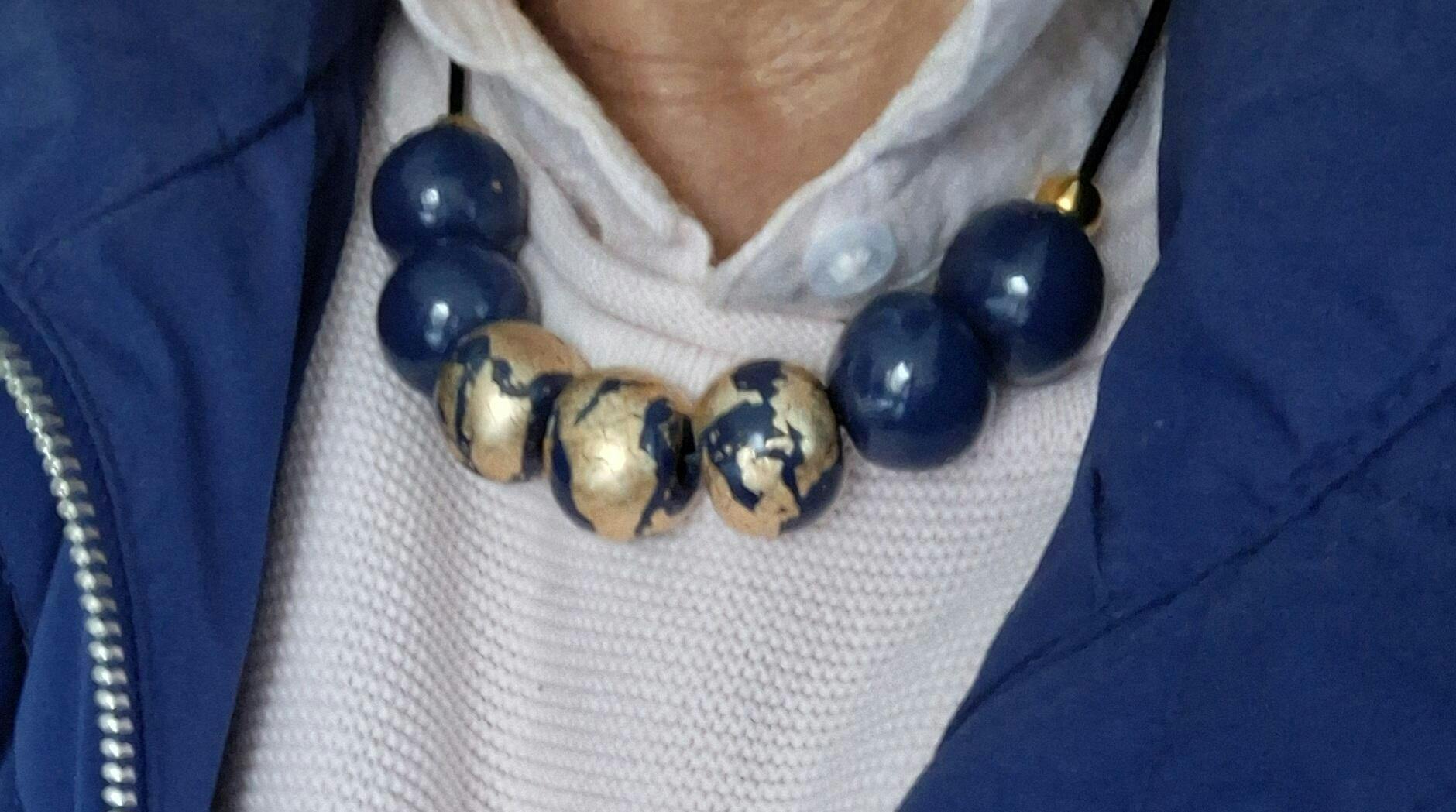 Navy & Gold Bead Necklace | Elegant Modern Statement Jewellery